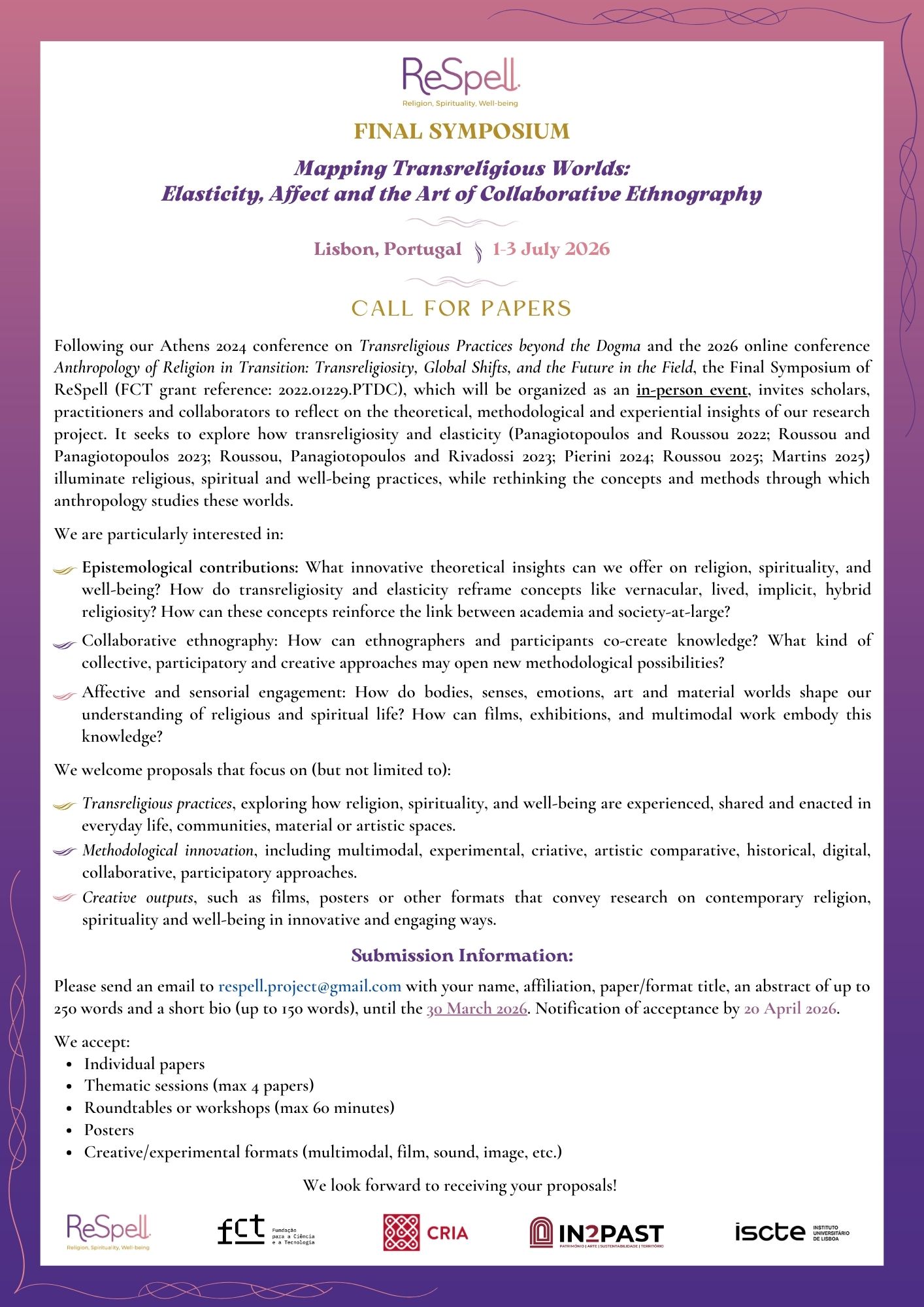 CALL FOR PAPERS for the Final Symposium of ReSpell, Lisbon, Portugal, 1-3 July 2026. For further details please click on the About button below.